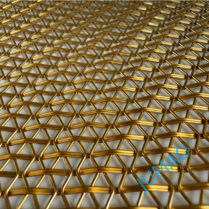 এর ব্যবহারিক সুবিধাগুলি ছাড়াও, এই আলংকারিক ধাতব জাল বিভাজক একটি স্টেটমেন্ট পিস যা অভ্যন্তরীণ সজ্জা উন্নত করে। ধাতব ফিনিসটি পরিশীলিততা এবং শিল্প আকর্ষণ যোগ করে, বিভিন্ন রঙের স্কিম এবং আসবাবপত্রের পরিপূরক। এর জ্যামিতিক বোনা নকশা আলো জালের সাথে মিথস্ক্রিয়া করার সময় আকর্ষণীয় ছায়া এবং ভিজ্যুয়াল প্রভাব তৈরি করে, যা একটি আকর্ষক এবং গতিশীল পরিবেশে অবদান রাখে।